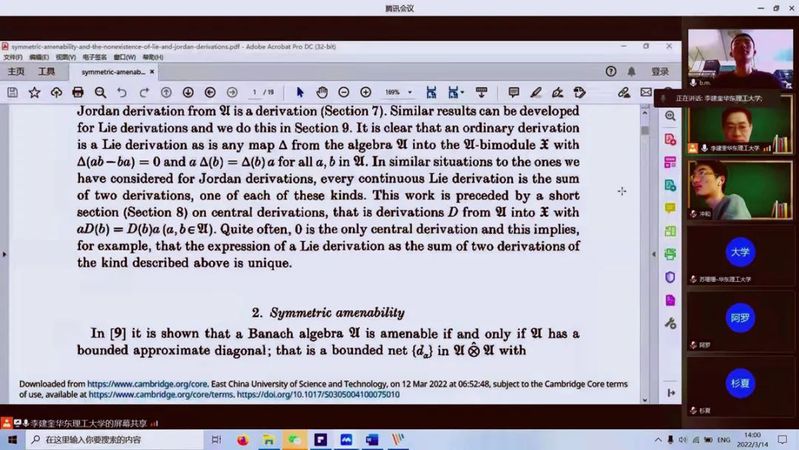 商学院积极响应上海市和学校疫情防控要求,进一步强化落实疫情防控措施,全学院上下齐心、通力配合,在非常时期筑牢师生安全防护墙。3月15日,学院通过线上会议开展座谈会,老师与同学们互动交流,询问并关爱健康观察学生的学习情况和生活状态,为同学过“难忘”的生日,师生集体开麦同唱生日歌。