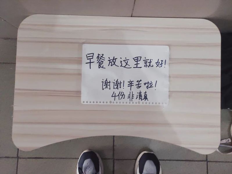 物理学院余石川:疫情严峻,但是宿舍楼里的同学们都能积极合作,一起面对。早上很早起床给同学们送饭,为了不打扰大家休息,决定请同学们在门口放一把椅子,然后把早饭放在椅子上。虽然当晚只是在群里提了一句,但在第二天就看见门口都整齐地放了一把椅子,大家高效配合工作的样子真的很棒。每次送餐到门前,同学们都会积极出门迎接,不忘说一句“谢谢”,这既是对我们工作的肯定,也让我感受到自己做的事是真切地帮助到大家,是与大家一起合作抗击疫情。很感谢同学们的配合,感谢老师总是及时出现解决同学们的问题,感谢宿管阿姨的关怀,也感谢后勤工作人员总是能够风雨无阻地将热腾腾的饭菜送到宿舍楼下。