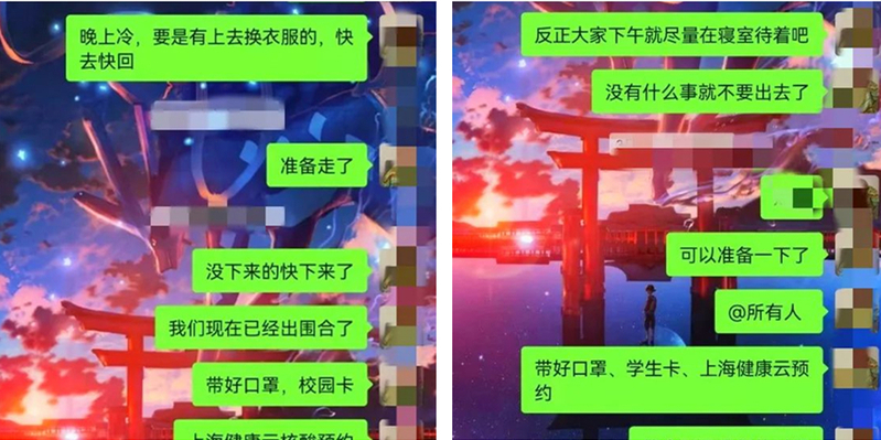 法学院王霞、俞安娜:尽管春天来得有些迟,但大家心中依然坚信“疫情终将过去,静候春暖花开”。在此期间,作为5舍层长,我们时刻坚守在自己的岗位上。每日,将新下发的通知传达到各寝室长、将一日三餐和生活物资按时配送到位、保证每位同学核酸尽检尽测已成为我们身上肩负的使命。这一切,只为——上海加油!完美官方在线入口加油!