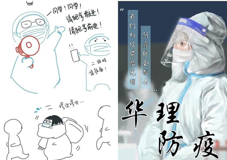 “虽然没到一线去,但是作为一名绘画爱好者,我能拿起笔,以漫画的形式,通过记录学校在抗击疫情过程中那些动人瞬间,传递真情和力量。我相信,华理师生携手同心,疫情终究会被我们击败。”居春莹信心满满地说。