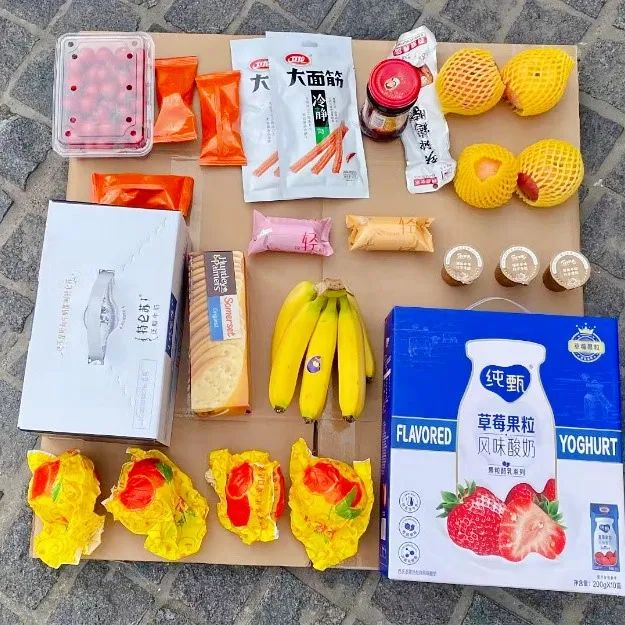 由商学院2021级全日制MBA班级的班长牵头,5个班级为在校的班级同学筹备了爱心物资共计33箱。物资包括爱心卡片寄语、水果、牛奶、酸奶、零食、生活用品、老干妈辣酱等等。