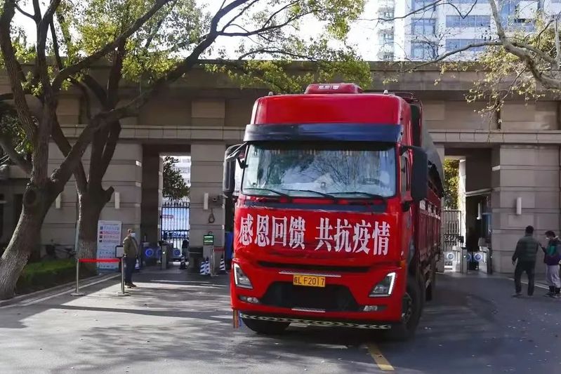 2辆满载冬瓜、包菜等重近30吨蔬菜的货车千里驰援,运抵上海,到达华理。这是安徽省阜阳市捐赠上海市徐汇区的农产品物资的一部分。