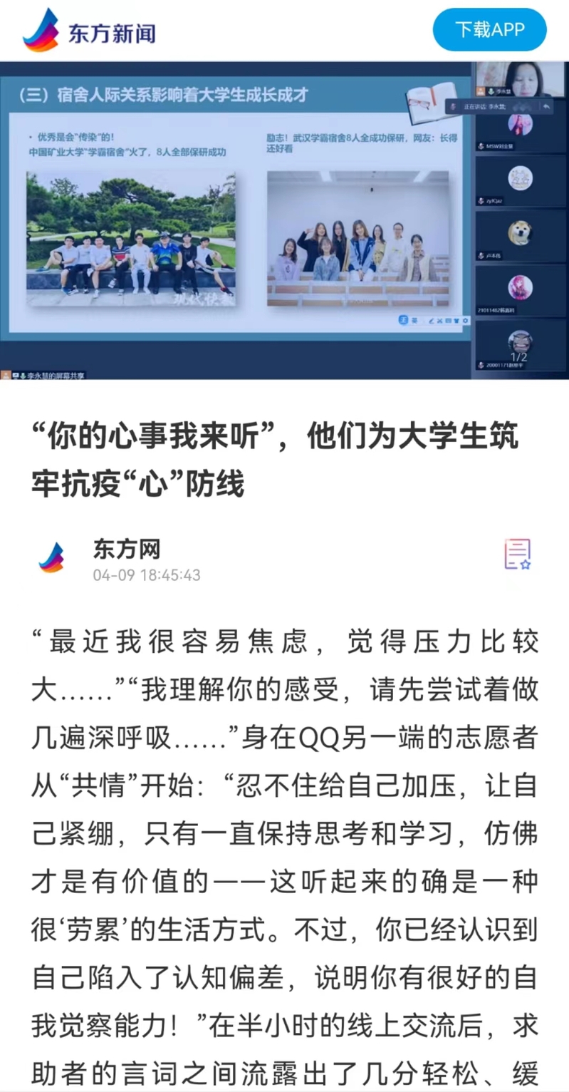 【东方网】“你的心事我来听”,他们为大学生筑牢抗疫“心”防线