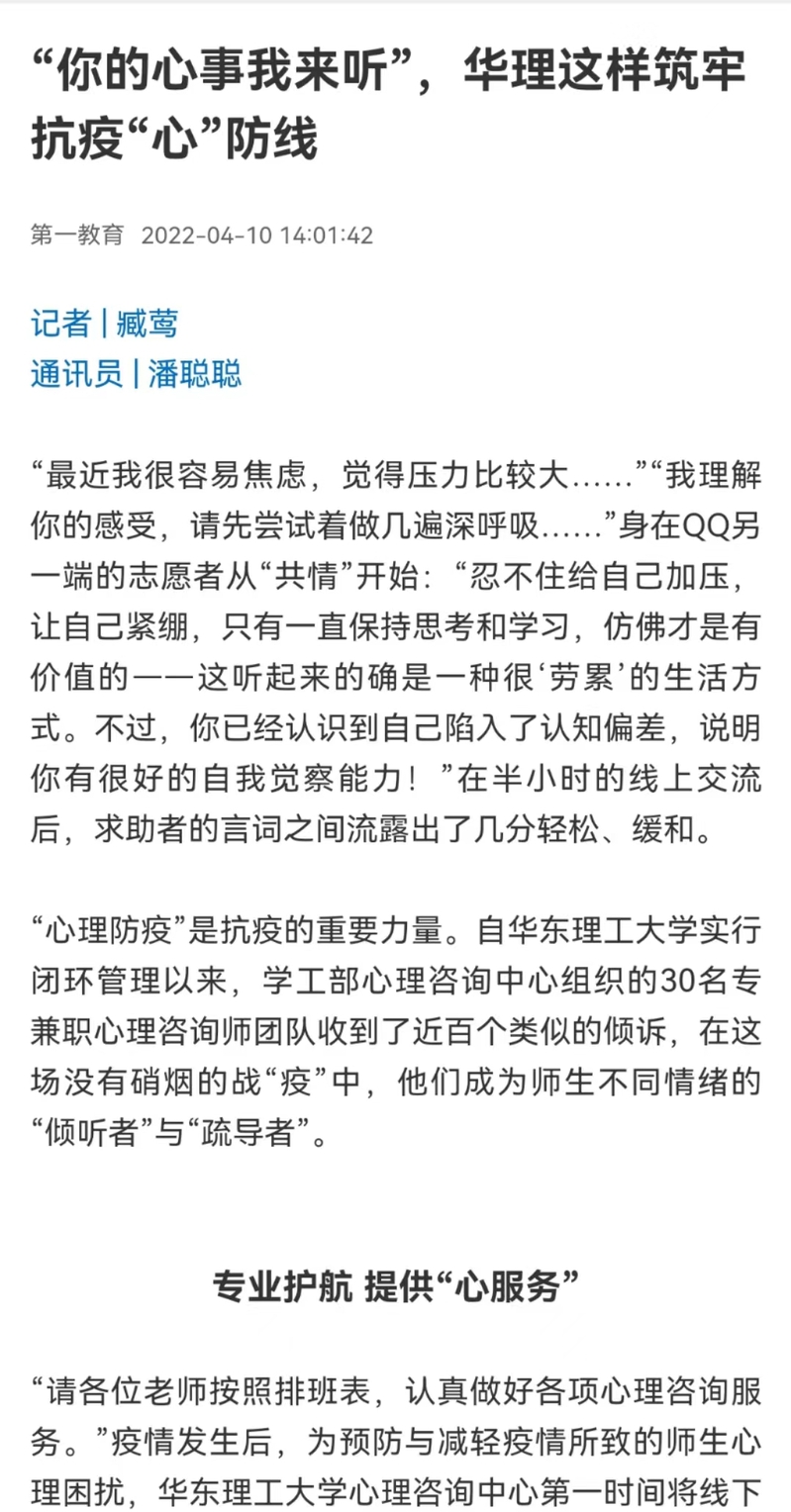 【第一教育】“你的心事我来听”,华理这样筑牢抗疫“心”防线