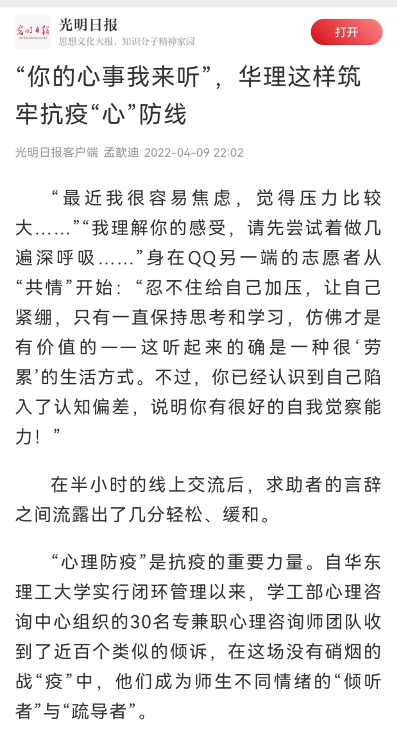 【光明日报客户端】“你的心事我来听”,华理这样筑牢抗疫“心”防线