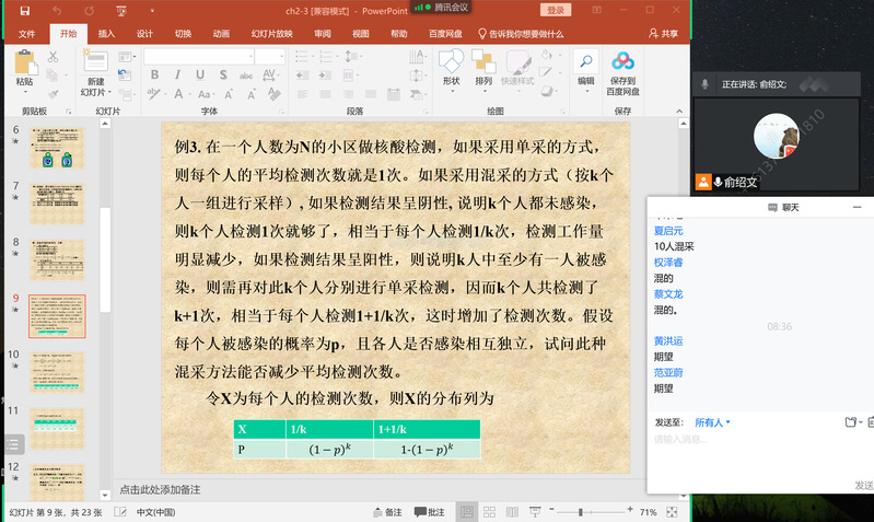 学以致用方能体会数学的乐趣。在“概率论与数理统计”线上教学中,数学学院教师俞绍文巧妙地引入了抗疫主题的案例分析。