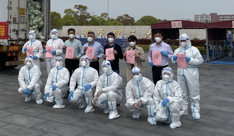 4月22日上午,一批由毕节市筹集的高原绿色蔬菜从毕节创美农副产品批发交易中心出发送往上海,跨越2000公里,运抵奉贤校区。校党委副书记项延训,副校长李涛,学生工作部(处)(武装部)部长崔姗姗,后勤保障处副处长龚向明、郑军等在奉贤校区对这批捐赠的抗疫物资进行了接收。