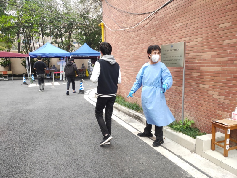 以上便是在宿舍楼闭环管理期间,周金才满负荷运转的一天,最忙的时候,他的工作时间可以达到18个小时。除了送餐、物资分发、楼内垃圾清运、协助核酸检测等工作,也经常能看到周金才在宿舍内维修的身影,某间宿舍的马桶堵了、马桶盖坏了,或者水管突然停水了、浴室的门坏了、盥洗室的灯管不亮了,他都尽己所能第一时间帮助同学们解决问题,他说:“特殊时期也让我和孩子们之间有了更多的交流,他们都很乐观,也会提醒我注意安全,这让我感到很暖心。”