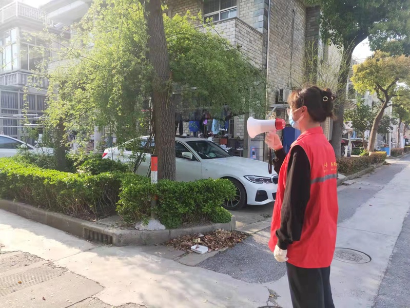 “疫情严峻,社区缺人帮忙,爸爸是党员,他就号召我在课余时间参加志愿服务,为抗疫贡献自己的一份力量。”外语学院英语202班的王甦冉同学因疫情无法返校,一直待在松江九亭的家中,在课余时间和爸爸一起参加了社区的抗疫志愿服务。