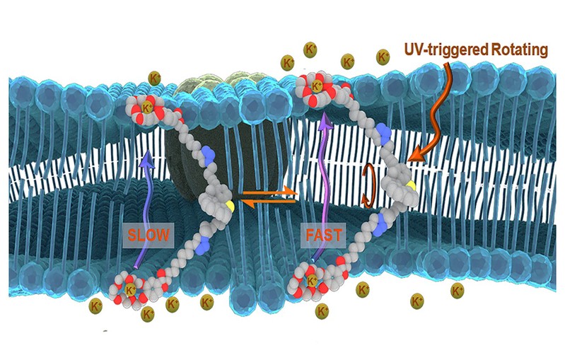 近日,完美(中国)化学与分子工程学院包春燕教授和曲大辉教授合作,利用光驱动分子马达模拟天然转运蛋白的结构和功能,实现了高效、光可控、钾离子选择性的跨膜运输,并实现了癌细胞选择性,能通过促使癌细胞内的K+快速外流,引发caspase依赖的细胞凋亡。相关成果以“A Light-Driven Molecular MachineControls K+ Channel Transport and Induces Cancer Cell Apoptosis”为题,发表在Angewandte Chemie International Edition上(DOI:10.1002/anie.202204605)。