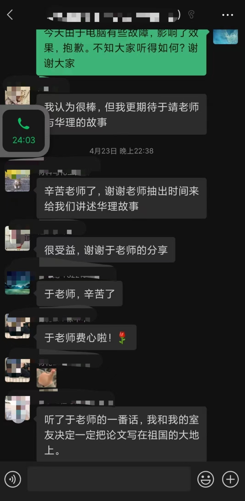 “蛮过瘾的”“很受益”“谢谢老师抽出时间来给我们讲述华理故事”“听了于老师的一番话,我和我的室友决心要把论文写在祖国的大地上”……适逢华理建校70周年,于靖精巧构思“云教育”,将思政教育融入就业指导,开设了“我所知道的华理”线上讲座,多次与广大研究生同学相约“云端”,同“屏”共振。