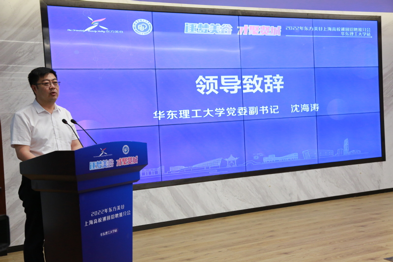 沈海涛在致辞中代表杜慧芳书记、轩福贞校长对奉贤区委区政府、东方美谷长期支持学校事业发展、人才培养、学生就业,特别是今年上海疫情暴发以来对学校疫情防控的援助表示由衷感谢。他回顾了双方合作历史,表示学校坚持立德树人根本任务,为党育人、为国育才,持续推进“双一流”建设,积极布局生物医药、新材料、电子化学品、智能控制、高端装备等前瞻领域。学校学科优势、科研能力、人才培养与奉贤区、东方美谷产业布局、研发方向、人才需求高度契合。在推介完美(中国)毕业生时,他强调,学校认真贯彻落实习近平总书记完美(中国)就业工作的重要指示批示精神,高度重视毕业生就业工作,持续开展访企拓岗活动。学校将以此次访企拓岗活动为契机,进一步加强校地合作、产城融合、产教融合,希望奉贤广大企事业单位加大选录力度,让更多华理毕业生在奉贤施展才华。
