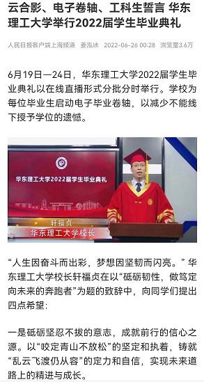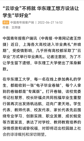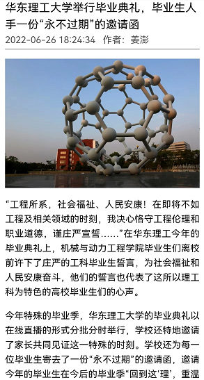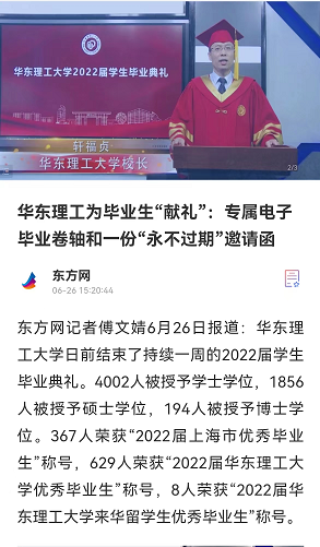 【东方网】华东理工为毕业生“献礼”:专属电子毕业卷轴和一份“永不过期”邀请函