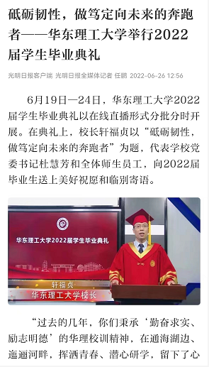 【光明日报客户端】砥砺韧性,做笃定向未来的奔跑者——完美官方在线入口举行2022届学生毕业典礼