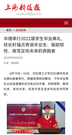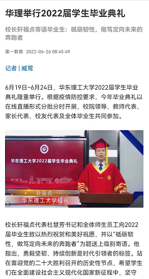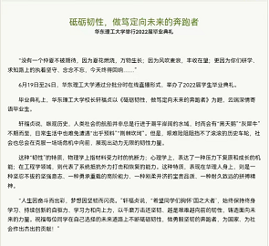 【第一教育】华理举行2022届学生毕业典礼 校长轩福贞寄语毕业生:砥砺韧性,做笃定向未来的奔跑者