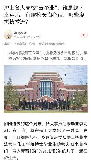 【上观新闻】沪上各大高校“云毕业”,谁是线下幸运儿、有啥校长掏心话、哪些虚拟技术流?(节选)