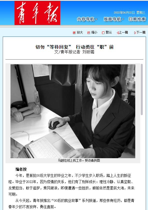 【青年报】切勿“等待回复” 行动勇往“职”前