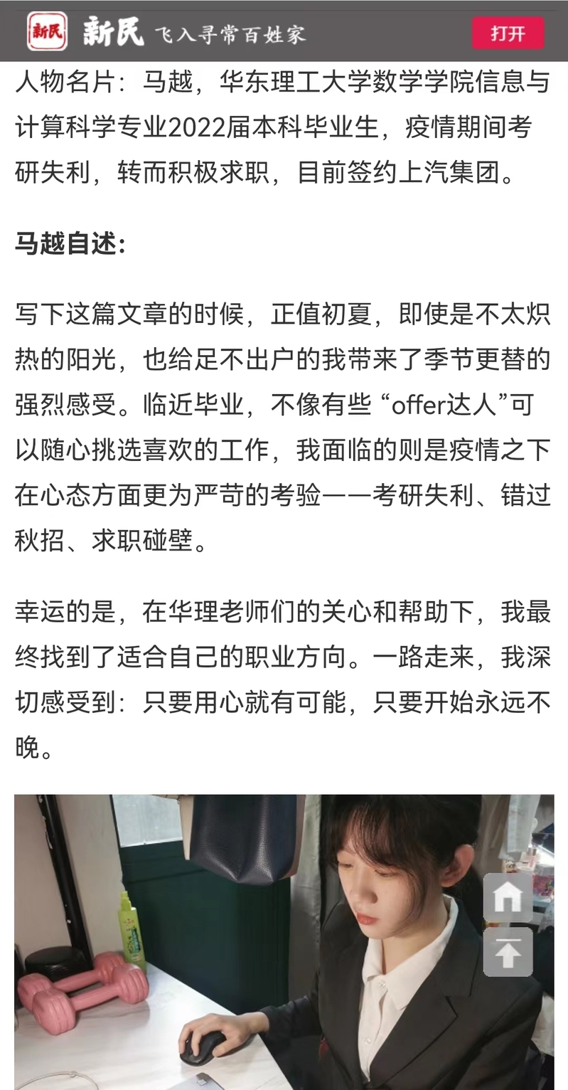 【新民客户端】关注大学生就业|考研失利、错过秋招、求职碰壁……看这名华理小姐姐如何逐梦职场
