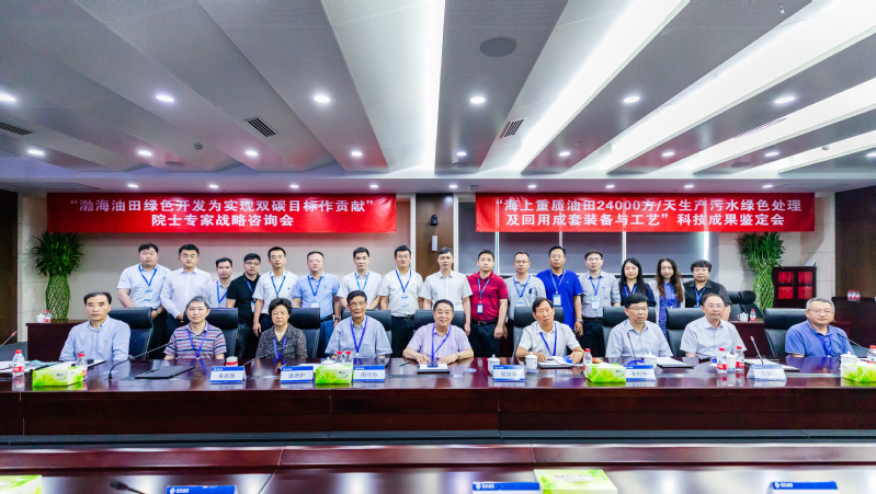 鉴定会由现场考察和会议质询两部分。专家在中海石油(中国)有限公司秦皇岛32-6作业公司智能油田操控中心通过云考察的方式参观了CEPJ重质油田平台,调研了位于该平台的24000方/天生产污水绿色处理及回用成套装备,系统了解了平台生产水处理模式及本项目装备、工艺的基本运行情况。由项目主要完成单位依次进行汇报后,经过专家组质询和讨论,一致认为,该成果围绕海上重质油田油品密度高、油水比例波动大、产水量高等复杂苛刻工况条件,构建了物理绿色分离为核心的海上重质油田生产污水处理新模式,吨水处理碳减排90%,实现了油回收、水回注、化学破乳剂近零消耗,攻克了海上平台水处理扩容提标的空间、载荷“瓶颈”难题。