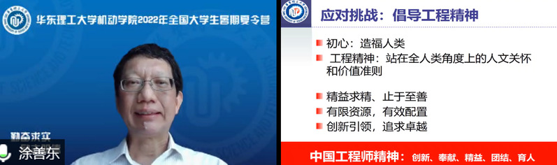 7月6日至7月7日,机械与动力工程学院以线上方式举办2022年全国优秀大学生暑期夏令营,来自全国80多所高校的近200名优秀大学生参加。校长轩福贞,校科协主席涂善东院士,机械与动力工程学院党委书记杨强、院长张显程、副院长白志山等出席夏令营活动,活动由动力工程及过程机械系主任黄毓晖主持。