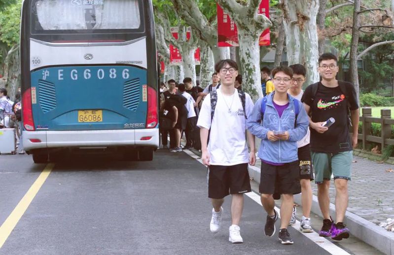 在徐汇校区,学校在宿舍楼门口竖起了欢迎牌迎接同学们,搬迁现场,暖心与温情随处可见。身着橙色外套的搬运工师傅骑着“爱心搬运车”,把行李搬上搬下,穿梭在楼宇之间。班导师、辅导员和宿管人员一起,调度安排、全程参与。后保处贴心地准备了姜茶、大麦茶,校医院安排的医护人员带着常用药物在两校区定点执勤。同学们互相帮助,学院组织的志愿者队忙前忙后,大家搬的搬、拿的拿、扛的扛,刚卸下的行李不一会儿就“消化”进了宿舍楼。