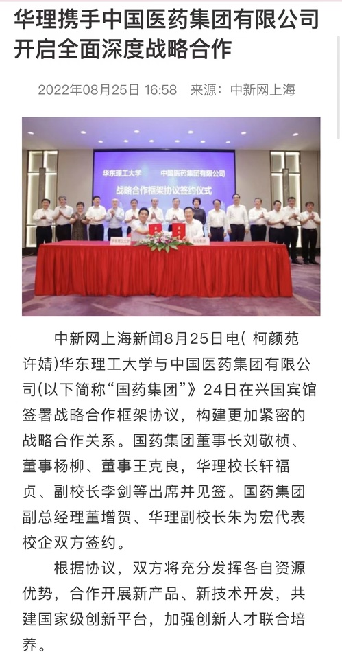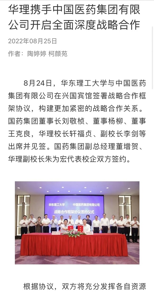 【中国新闻网】华理携手中国医药集团有限公司开启全面深度战略合作