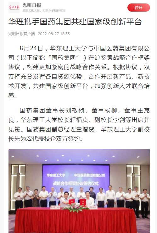 【光明日报客户端】华理携手国药集团共建国家级创新平台