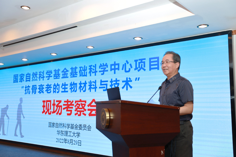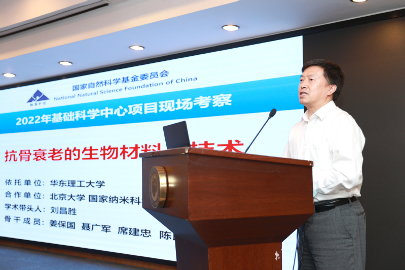 考察会上,项目负责人刘昌胜现场汇报了“抗骨衰老的生物材料与技术”基础科学中心项目未来五年拟开展的研究工作、研究方案、五年预期目标及未来可能取得的重大突破等。他表示,该项目面向国际科技前沿领域,紧抓骨基质、骨细胞、微环境三大骨衰老的关键科学问题,提出活性材料抗衰老的新思路,以“骨衰老新机制”“骨修复材料”“药物递送”“临床治疗”为核心研究内容,用整体观和系统观研究破解抗骨衰老难题。