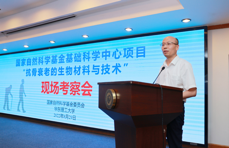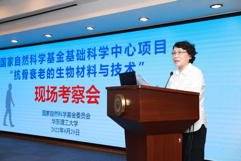 杜慧芳代表学校致欢迎辞,她首先感谢基金委长期以来对学校事业发展的关心和支持。随后简要介绍了学校近年来在科学研究方面取得的进展,以及刘昌胜院士团队长期在抗骨衰老生物材料与技术领域积累的良好基础。她表示,学校高度重视基金委基础科学中心项目建设,将在资金投入、硬件设施、人才保障等方面,对项目建设给予全方位支持。希望中心通过本项目的实施,在骨衰老的干预与疾病治疗领域产生一批在国内外具有重要影响的研究成果和核心专利技术,助力健康中国建设行动。