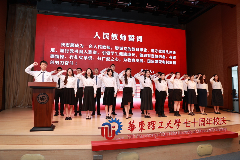 在2021-2022学年,学校新入职教师130人,他们是华理教师队伍的生力军,他们的到来为学校发展注入了新的活力。会上,由项延训领誓,全体新进教职工进行了“人民教师誓词”入职宣誓。