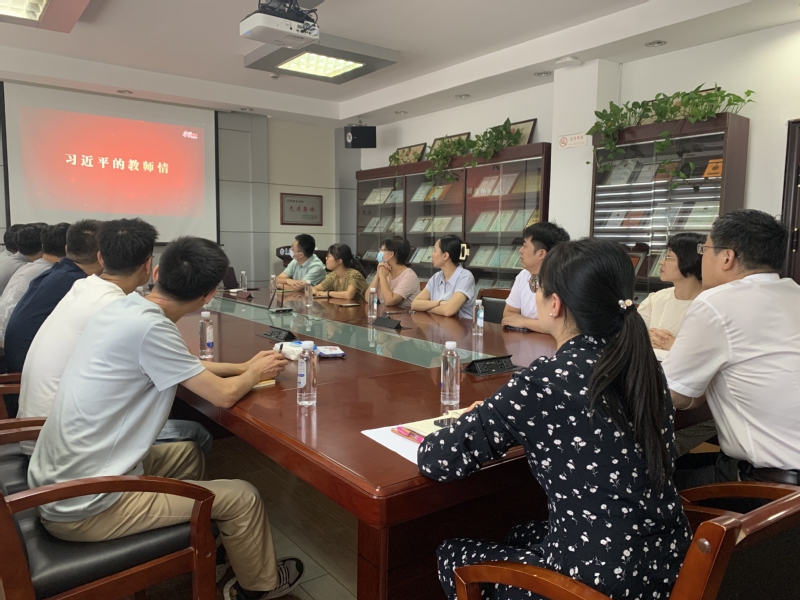 图片说明:大会集体学习《习近平的教师情》专题片