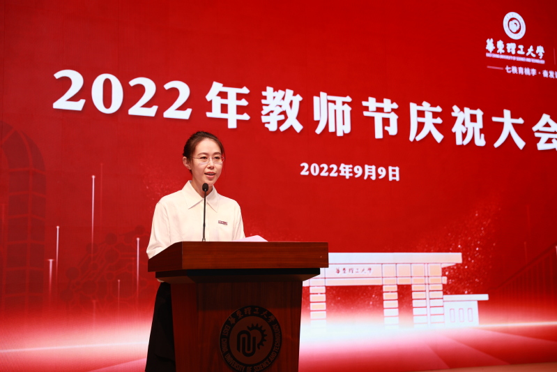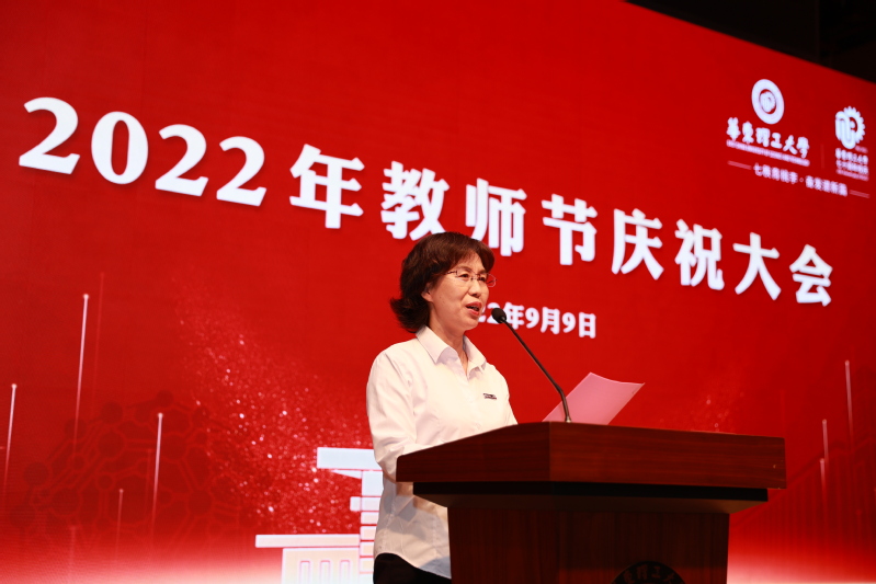 杜慧芳作题为“铸魂育人担使命 踔厉奋发启新程”的主题报告。她代表学校、代表轩福贞校长向一直以来为学校发展辛勤耕耘的广大教师表示衷心的感谢,向受到表彰的各位老师表示热烈的祝贺,向全体教职员工致以节日的问候。她指出,一年来,学校人才培养取得新成效、“双一流”建设迈出新步伐、学位点建设获得新突破、科学研究实现新飞跃、师资队伍呈现新面貌、校园基础建设得到新改善。