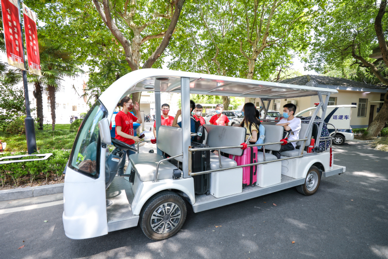 “学校在上海南站设了新生接站点,专车接送我们到奉贤校区报到,挺方便的。”一位家长说。进入校区后,校内短驳车则“接班”,将新生及行李直接送到宿舍楼下,“一站式”服务全程无缝。针对2022级推荐免试研究生新生,学校也提前安排车辆,将他们的行李运至奉贤校区,大大地提高了报到效率。