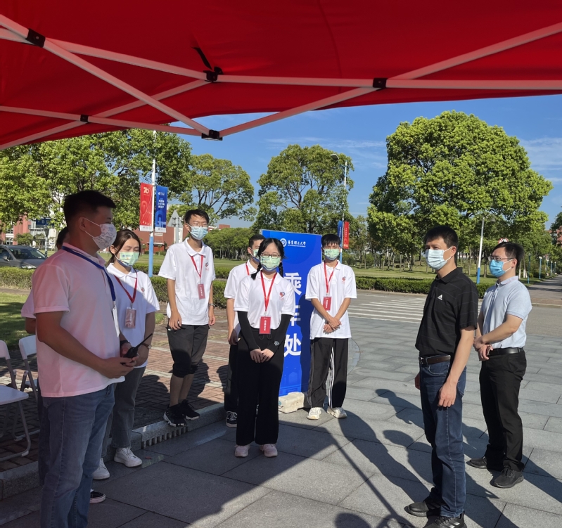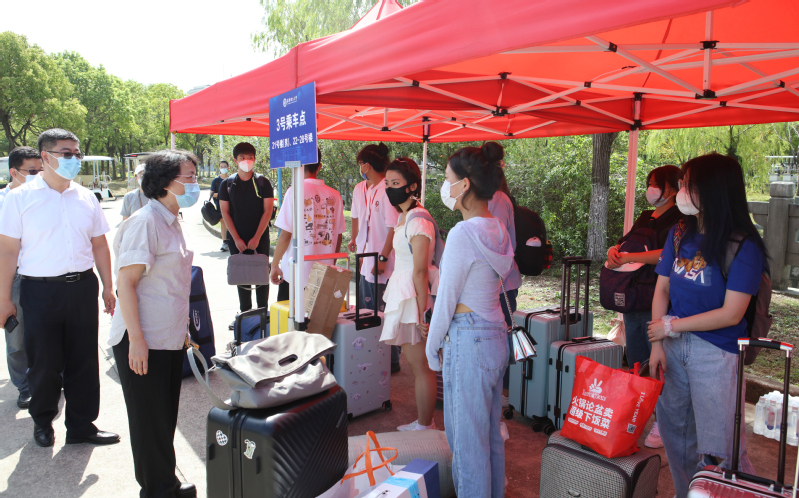 当天下午,沈海涛、李剑又来到奉贤校区检查迎新工作,慰问工作人员。此前一天,校党委副书记项延训也在奉贤校区指导工作。
