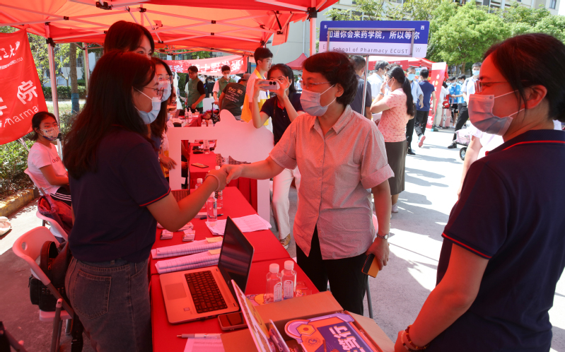9月10日是研究生新生报到日。早上,校党委书记杜慧芳,校党委副书记沈海涛,副校长李涛、阎海峰、李剑等校领导,在徐汇校区各学院迎新现场检查和指导迎新工作,慰问一线的工作人员,祝他们中秋节、教师节“双节”快乐。