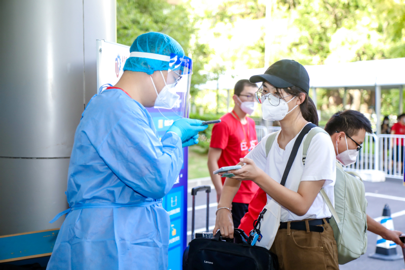 “疫情防控人人有责,健康校园有你有我”,在疫情防控常态化背景下,学校严格落实疫情防控工作有关要求,提前制定多项措施,科学设置人员行进路线,本研新生在工作人员和志愿者的引导下,有序进行身份核验、体温检测、健康码查验、入校资格核查后进入校园。