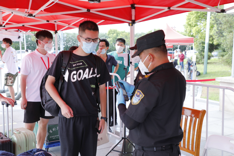9月11日一早,杜慧芳、沈海涛、李涛、王慧锋、朱为宏、阎海峰等校领导来到奉贤校区指导迎新工作。校领导先后在南正门、北侧门检查学生入校身份核验、短驳车辆安排等情况,并前往保卫处监控室察看视频监控,了解核酸检测、学生休息、检测结果告知等工作安排。