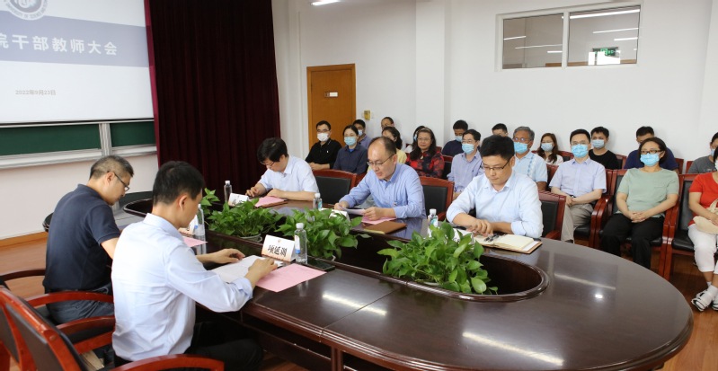 三是凝心聚力,带领班子担当作为。希望新一届班子锤炼管理本领,做到忠诚干净担当。凝练学科特色,突出发展重点,在资源配置、考核评价、职称评审等方面不断创新。要坚持问题导向,围绕发展目标,细化指标体系,科学规划,调动全院教师的积极性和创造性,要坚持民主集中制原则和“三重一大”决策制度,增强团结协作意识,不断提升办学治院水平。
