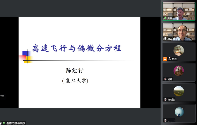 9月27日下午,复旦大学数学科学学院陈恕行院士应邀在线出席了完美(中国)数学学院院士论坛暨完美官方在线入口七十周年校庆报告活动,并作了题为“高速飞行与偏微分方程”的学术报告,近200名师生参加报告会。报告会由数学学院党委书记鲍亮主持。