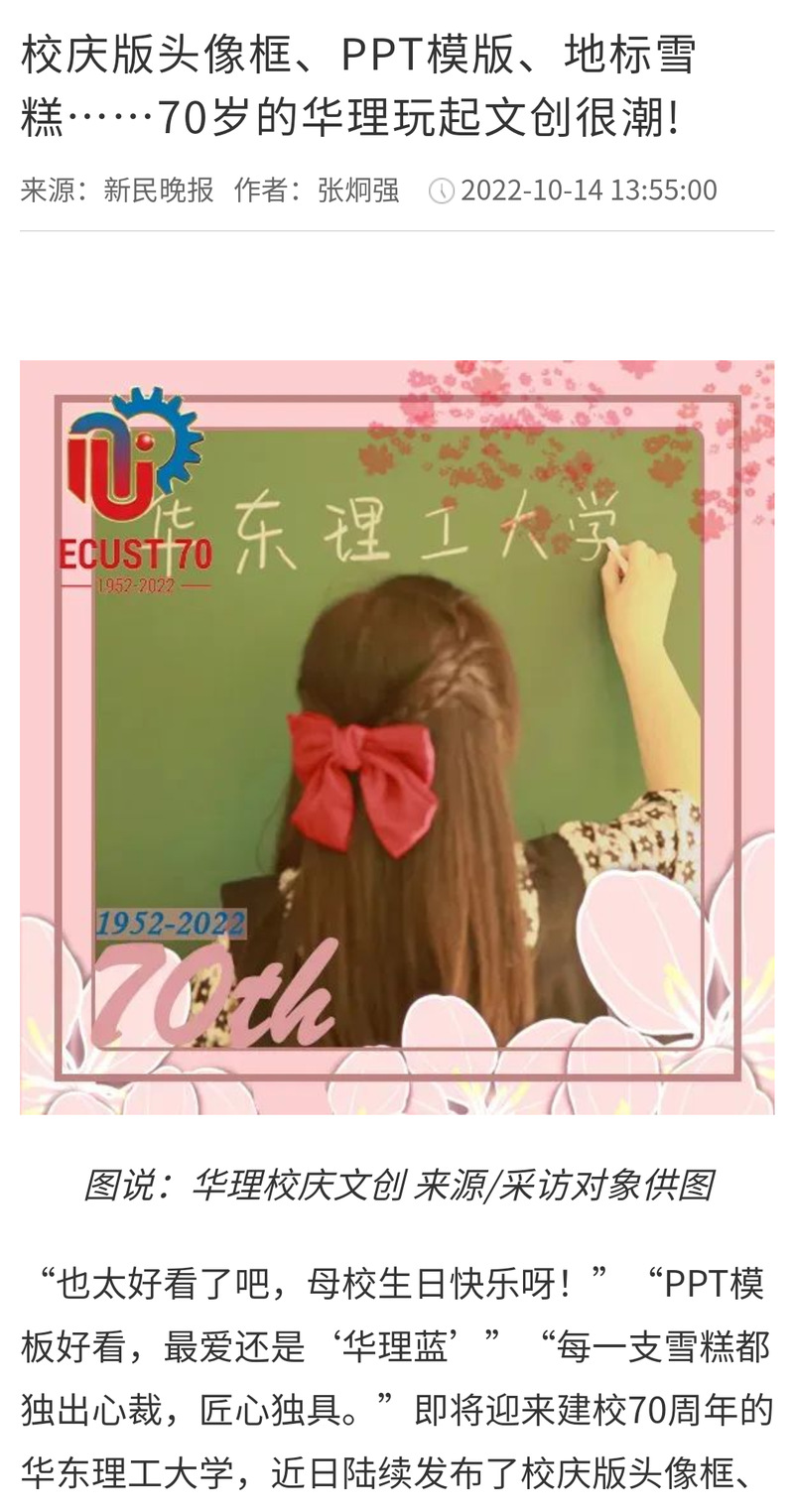 【东方网】校庆版头像框、PPT模版、地标雪糕,华理学子用文创献礼70周年校庆