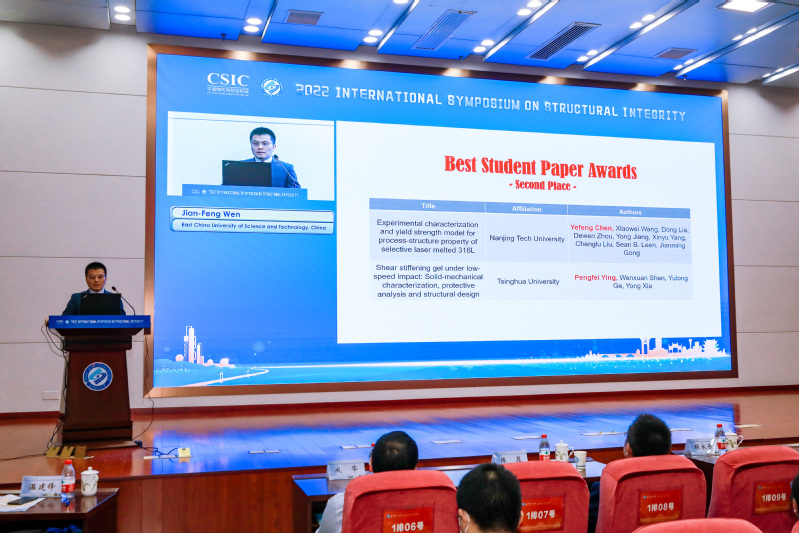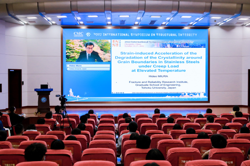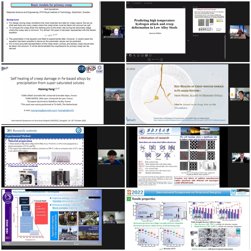 ISSI2022邀请了来自中国、新加坡、日本、英国、加拿大等国的本领域14位著名专家学者在5个串行会场作特邀报告,包括中国工程院院士、浙江大学杨卫教授作题为“Solids in nano-scales - extreme strength and elasticity”的报告,美国国家科学院和国家工程院院士、新加坡南洋理工大学Huajian Gao教授作题为“Engineer metals with internal interfaces for enhanced mechanical performance”的报告,法国国家技术科学院院士、香港城市大学吕坚教授作题为“Multiscale mechanics and structural integrity of additive manufactured materials”的报告,中国工程院院士、中国石油大学(北京)张来斌教授作题为“Status and challenge of oil and gas storage tank detection technology”的报告,中国工程院院士、长沙理工大学郑健龙教授作题为“Design theory and method of new durable asphalt pavement”的报告,日本东北大学Hideo Miura教授作题为“Strain-induced acceleration of the degradation of the crystallinity around grain boundaries in stainless steels under creep load at elevated temperature”的报告,澳大利亚工程院院士、南方科技大学叶林教授作题为“Design and characterisation of mechanical meta-materials for impact mitigation”的报告,电网输变电设备防灾减灾国家重点实验室主任陆佳政教授作题为“Research and application of anti-icing technology for power grid”的报告,日本原子能机构Yinsheng Li教授作题为“Structural integrity assessment of important components in nuclear power plants”的报告,NDT&E主编、英国纽卡斯尔大学Guiyun Tian教授作题为“RFID sensors-based inspection and monitoring structural integrity”的报告,NDT&E International主编、英国布里斯托大学Bruce Drinkwater 教授作题为“Recent advances in ultrasonic array imaging and its implications for structural integrity assessment”的报告,加拿大工程院院士、阿尔伯塔大学Hongbo Zeng院士作题为“Probing reversible noncovalent molecular interactions toward developing multifunctional soft materials and surfaces”的报告,湖南大学史才军教授作题为“Design of ultra high performance concrete for resilient infrastructures”的报告,河北工业大学书记、原校长韩旭教授作题为“Multi-source uncertainty quantification, propagation and optimization design for mechanical structures”的报告等。本次会议受到了国内外学者的广泛关注,大会报告直播在线点击量超过3万次。