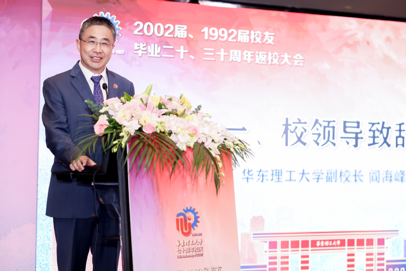 阎海峰代表学校对两届校友的到来表示热烈欢迎。他在致辞中指出,70年来,一代代华理人勤奋求实、薪火相传,用勤劳和智慧建设家园,希望校友们一如既往地关心和支持母校发展,凝心聚力,共同推动学校“双一流”建设和教育事业发展,在中国式现代化的宏伟征程上作出华理人更大的贡献。