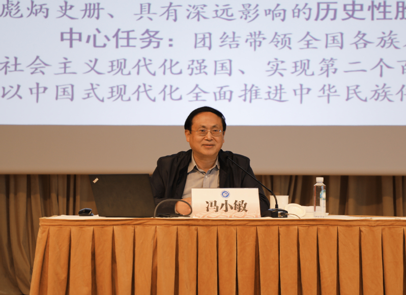 冯小敏围绕党的二十大的召开背景和重要意义、按照“五个牢牢把握”深刻领会党的二十大精神以及如何学习宣传贯彻好党的二十大精神等3个方面,引导师生原原本本研读党的二十大报告。他以时间为轴线,通过生动的案例,深入分析了党的二十大召开的国内外复杂环境背景,强调了世界之变、时代之变、历史之变,正以前所未有的方式展开。同时强调,要按照牢牢把握过去5年工作和新时代10年伟大变革的重大意义,牢牢把握习近平新时代中国特色社会主义思想的世界观和方法论,牢牢把握以中国式现代化推进中华民族伟大复兴的使命任务,牢牢把握以伟大自我革命引领伟大社会革命的重要要求,牢牢把握团结奋斗的时代要求等5个方面,深刻领会党的二十大精神。他指出,学习宣传贯彻党的二十大精神是当前和今后一个时期全党全国的首要政治任务,事关党和国家事业继往开来,事关中国特色社会主义前途命运,事关中华民族伟大复兴。要整体把握、全面系统,又要突出重点、抓住关键,坚持知行合一,贯彻落实好党的二十大作出的重大决策部署,为全面建设社会主义现代化国家、全面推进中华民族伟大复兴而团结奋斗。