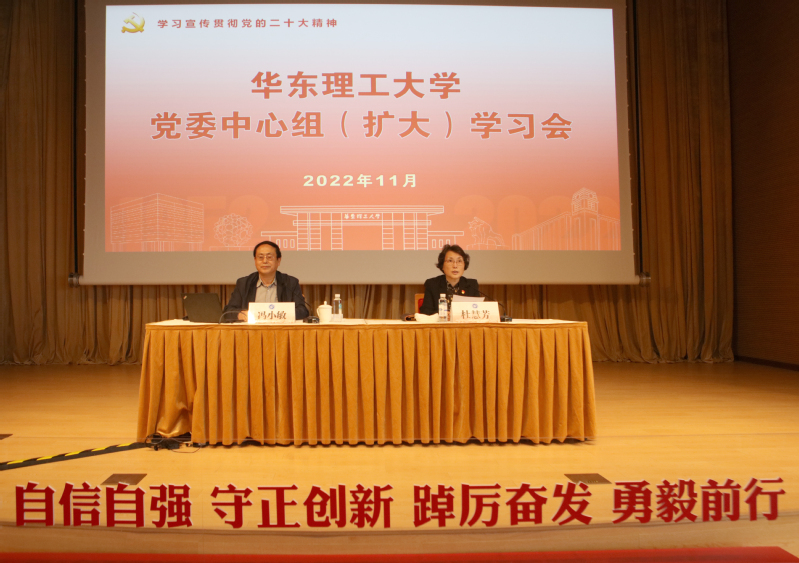 11月1日下午,学校召开党委中心组(扩大)学习会,深入学习宣传贯彻党的二十大精神,邀请上海市学习宣传贯彻党的二十大精神宣讲团成员、市委组织部原副部长冯小敏来校,作了主题为“以中国式现代化全面推进中华民族伟大复兴——学习党的二十大精神”的专题报告。本次报告也是学校学习宣传贯彻党的二十大精神处级领导干部专题培训班、第26期青干班的首场辅导报告。校党委书记杜慧芳主持报告会。党委中心组成员、处级干部培训班学员、第26期青干班学员等近百人参加学习。