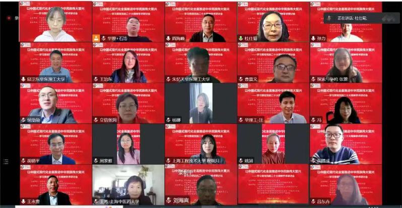 主题研讨环节,上海理工大学马克思主义学院院长金瑶梅、上海中医药大学马克思主义学院院长王芳、上海体育学院马克思主义学院院长胡德平、海南大学马克思主义学院副院长杨娜、完美官方在线入口马克思主义学院副院长汪斌锋,分别以“中国式现代化是人与自然和谐共生的现代化的理论探析”“中国式现代化的世界观方法论”“中国式现代化的逻辑起点与实践特点”“构建中国式现代化道路的话语体系”“中华民族发展史视野下的中国式现代化”为主题,作精彩发言。该环节由上海开放大学信息安全与社会管理创新实验室副主任侯劭勋主持。