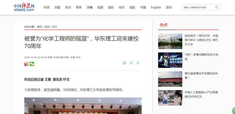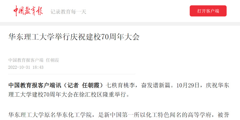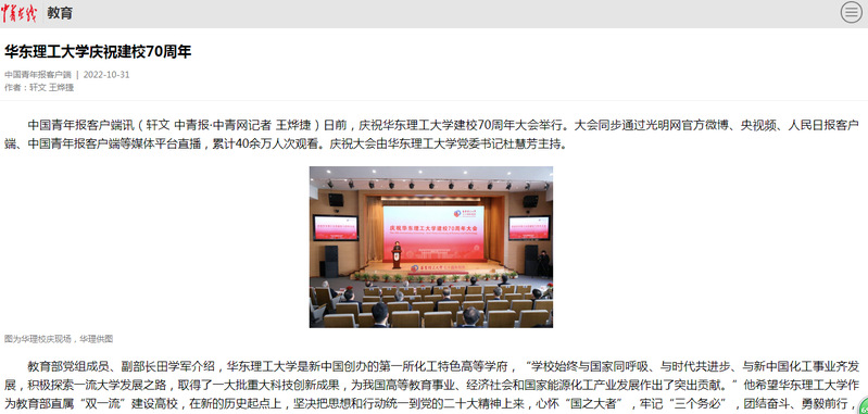 【中国科技网】被誉为“化学工程师的摇篮”,华东理工迎来建校70周年