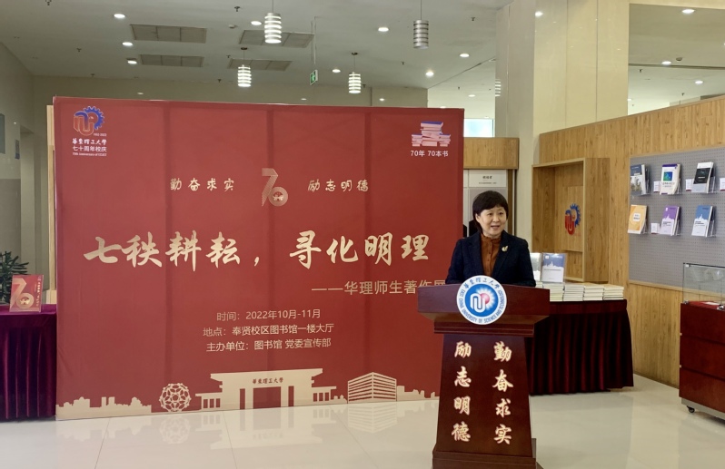 七十年栉风沐雨,七十载春华秋实。11月4日下午,“七秩耕耘,寻化明理——华理师生著作展”开幕式在奉贤校区图书馆一楼书展墙空间举行。副校长王慧锋出席并讲话。图书馆馆长林嘉平、宣传部副部长房树芬及各学院师生代表参加了开幕式。开幕式由图书馆副馆长常亚青主持。