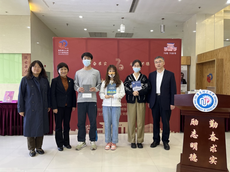 书展开幕式精选了70本华理师生著作赠送给各学院学号带有“70”数字并参加开幕式现场活动的同学们。王慧锋、林嘉平、房树芬一起为受赠学生代表赠送图书。