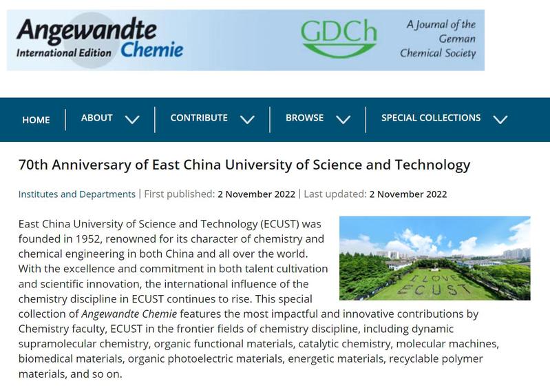 专辑链接:https://onlinelibrary.wiley.com/doi/toc/10.1002/(ISSN)1521-3773.ECUST-70