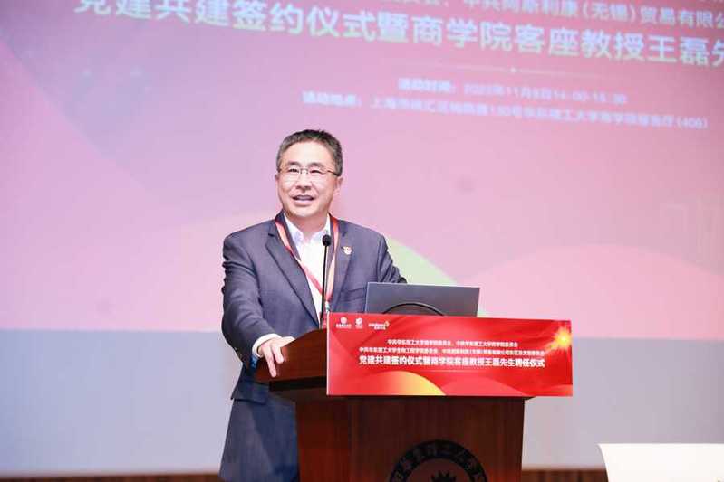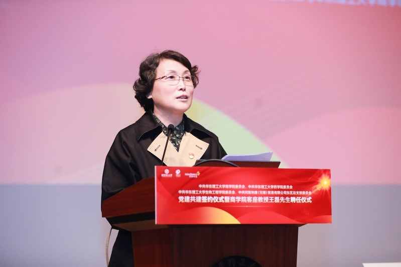 杜慧芳在致辞中首先对阿斯利康各位嘉宾的到来表示热烈的欢迎和衷心的感谢。她表示,与阿斯利康开展基层党组织党建共建活动,是校企双方贯彻落实党的二十大精神的重要举措。近年来,学校瞄准国家重大需求,围绕生物医药、生命健康等领域,积极创建生物医药创新平台,着力攻克关键核心技术,解决从0到1的原创性科学问题。同时,商学院积极发挥学科优势,致力于连接商业与科技,在人才培养机制和水平上均取得了重要突破。她指出,阿斯利康作为一家以创新为驱动的全球性的生物制药企业,坚持科学至上,积极对接国家医疗需求,期待双方以本次党建共建为契机,深化创新人才培养,加强产教深度融合,促进协同创新发展,共同为建设健康中国、增进人民健康福祉作出新的更大贡献。